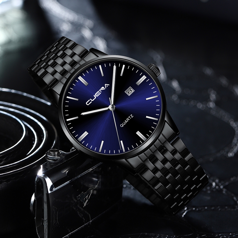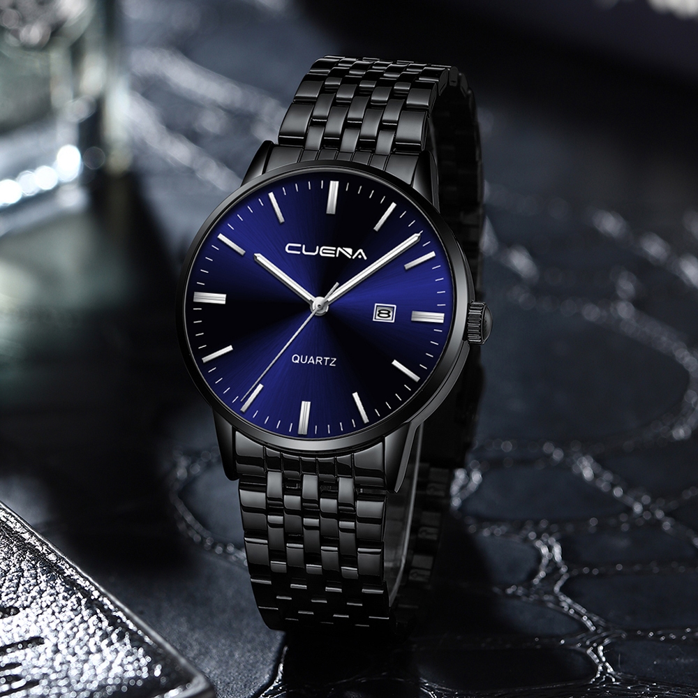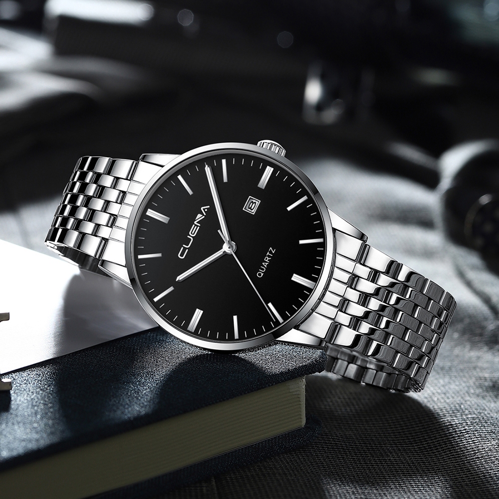 Cuena Kasual Olahraga Jam Tangan Pria Stainless Steel Band Jam Tangan Sederhana Dial Jam Kuarsa Dengan Bercahaya Pointer