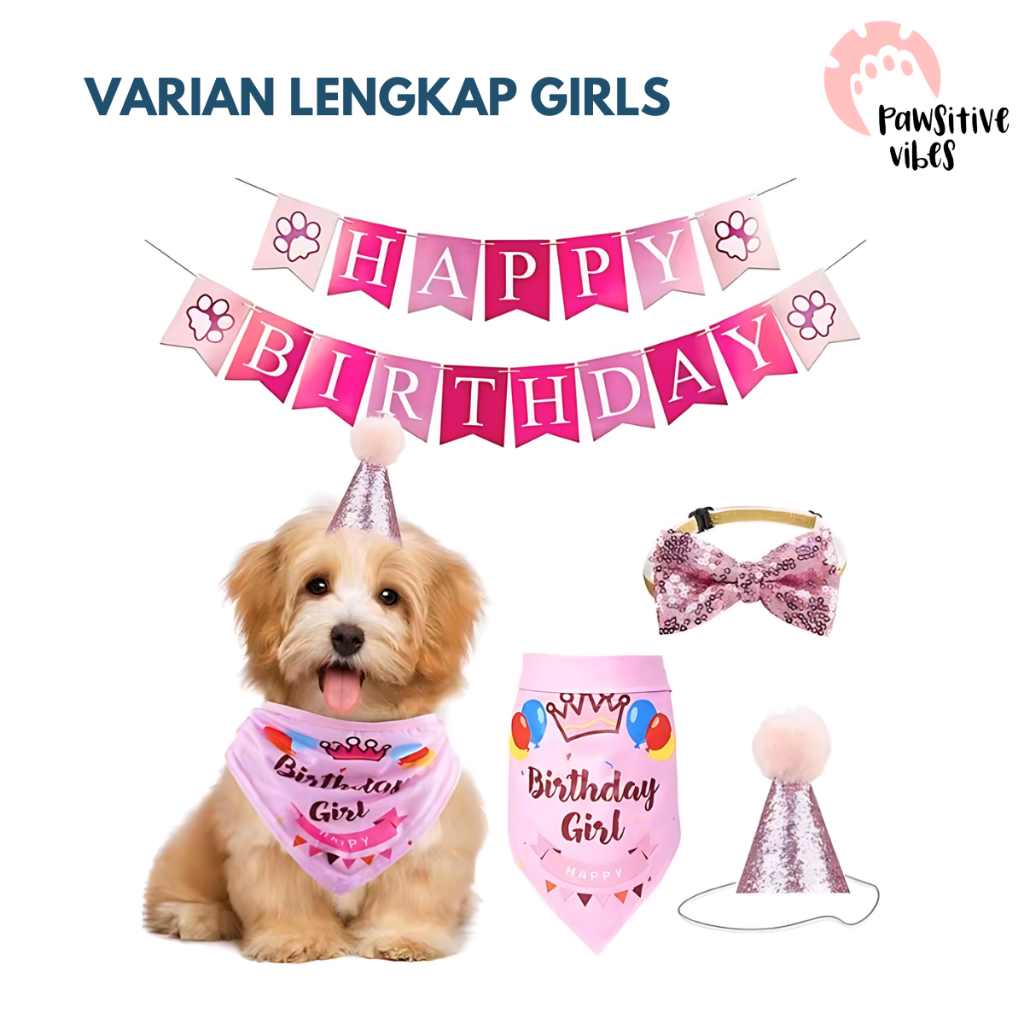 Banner Ulang Tahun Anjing Kucing - Accessories dan Dekorasi Ultah Untuk Anjing dan Kucing - Topi Pesta Ulang Tahun Anjin