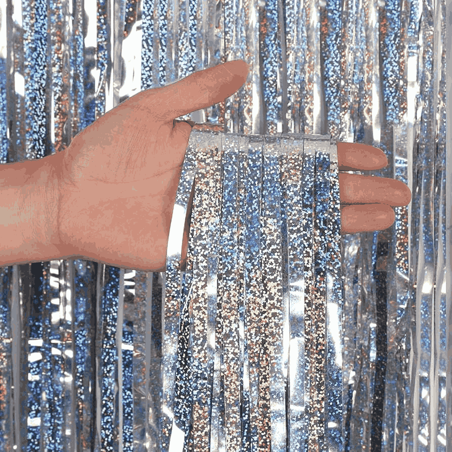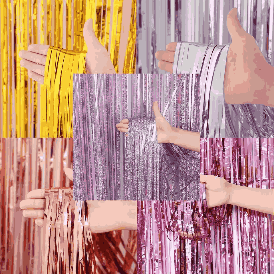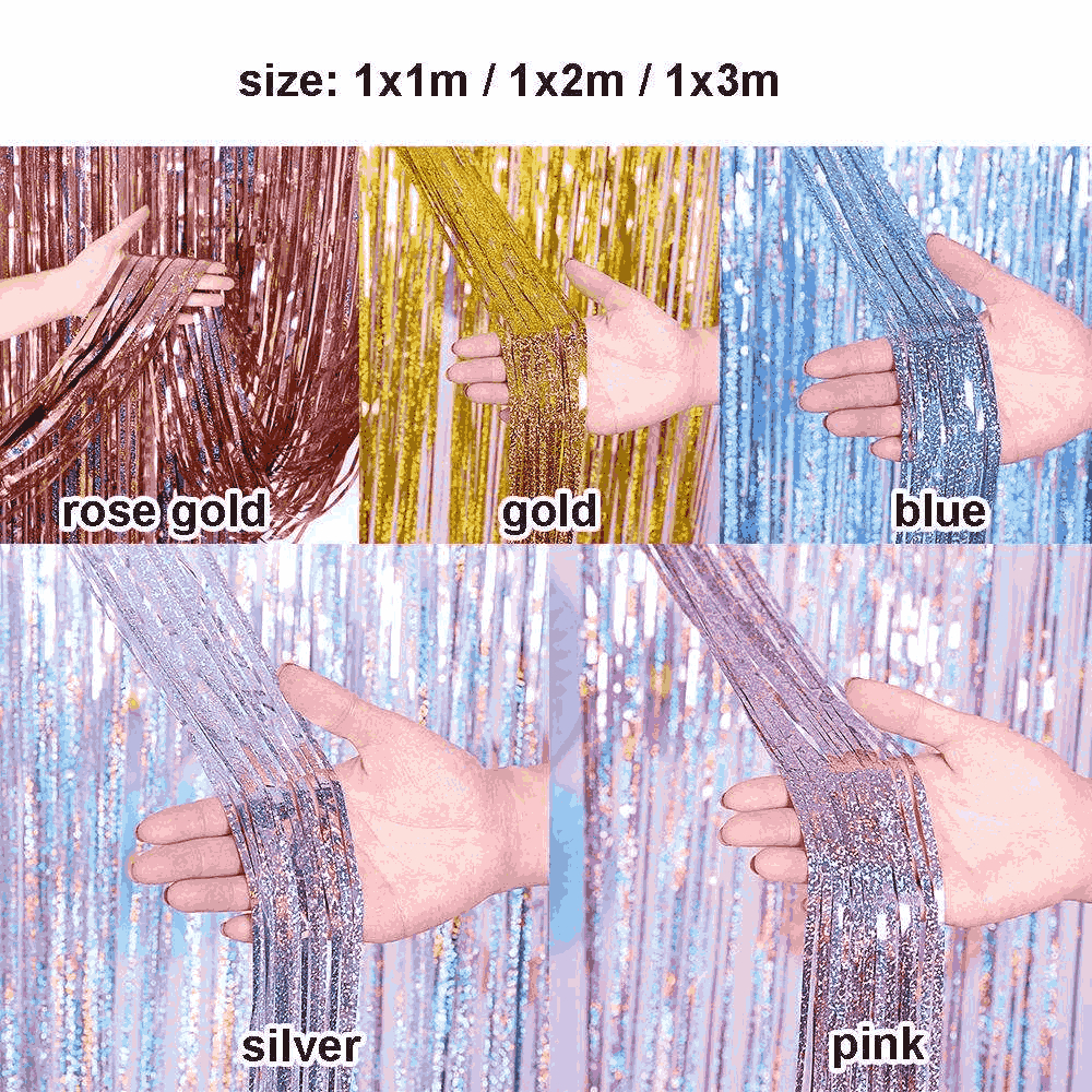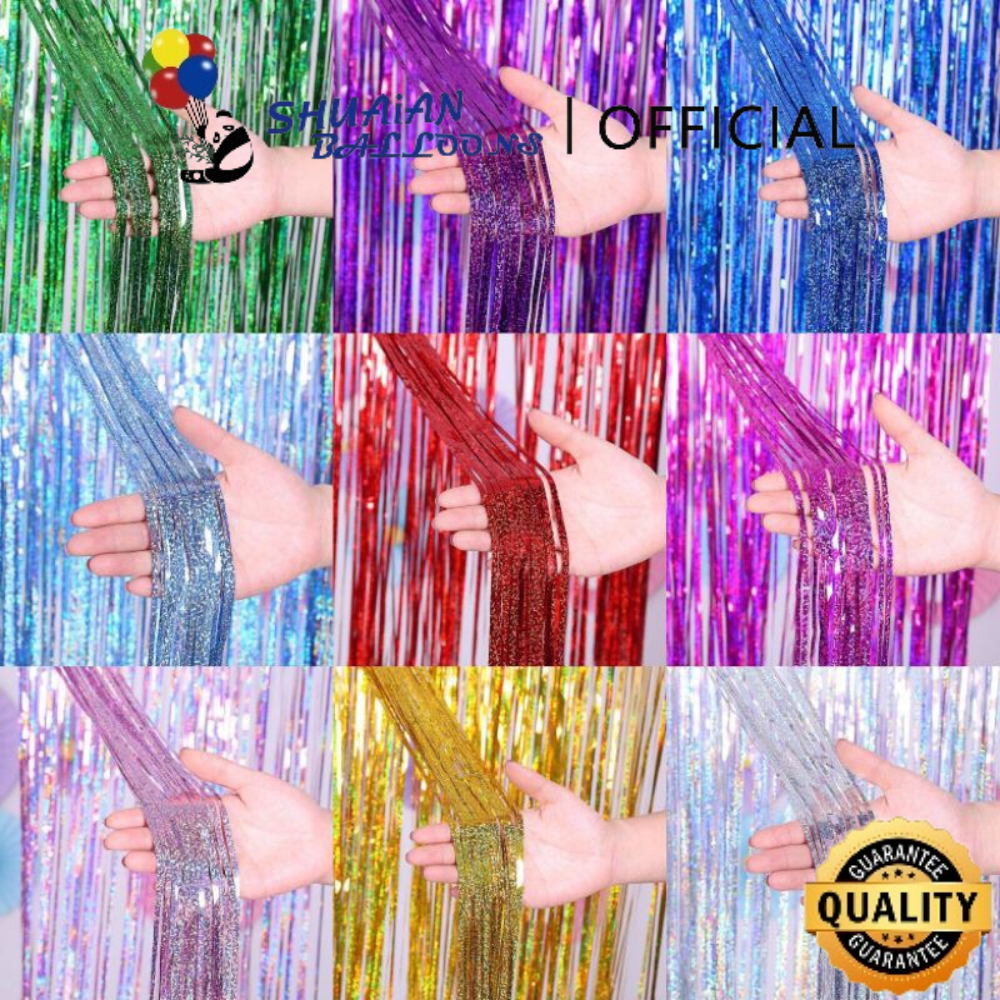 SHUAIAN Tirai Rumbai Foil Laser Untuk Latar Belakang Foto Pesta dan Dekorasi Ulang Tahun Ukuran 21 meter