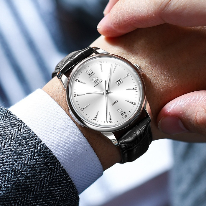 Olevs Jam Tangan Pria Original Anti Air Cowok Kulit Kalender Analog Arloji Bisnis Fashion Men Watch Ready Stock Mode 50