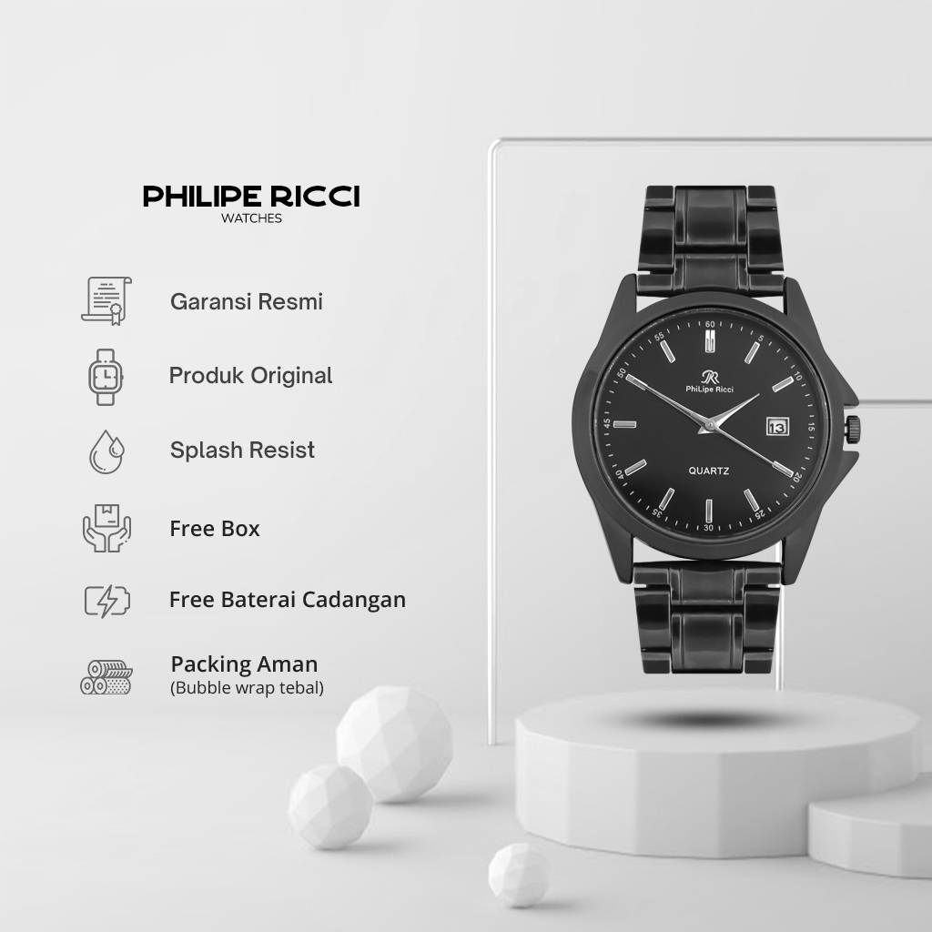Philipe Ricci Jam Tangan Couple Rantai Besi Pria Wanita Terbaru Elegan 7501 Free Box