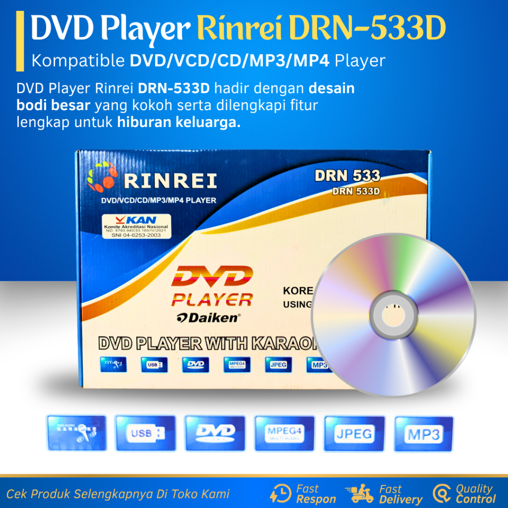 DVD Player Rinrei DRN-533D New Body Besar DVD/VCD/CD/MP3/MP4 Player Multimedia Pemutar Film Kaset DVD Player
