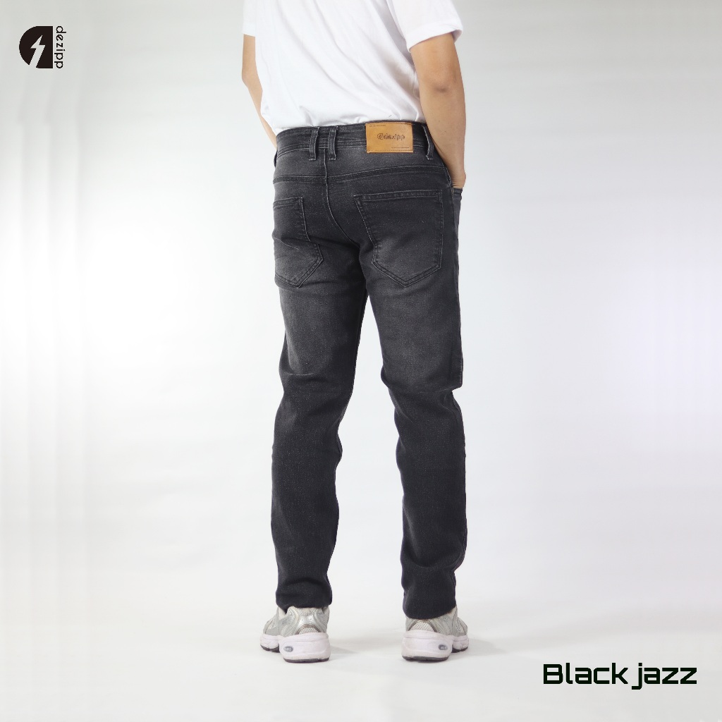 Dezipp Celana Panjang Jeans Denim Pria Skinny Stretch Bahan Melar Black Jazz
