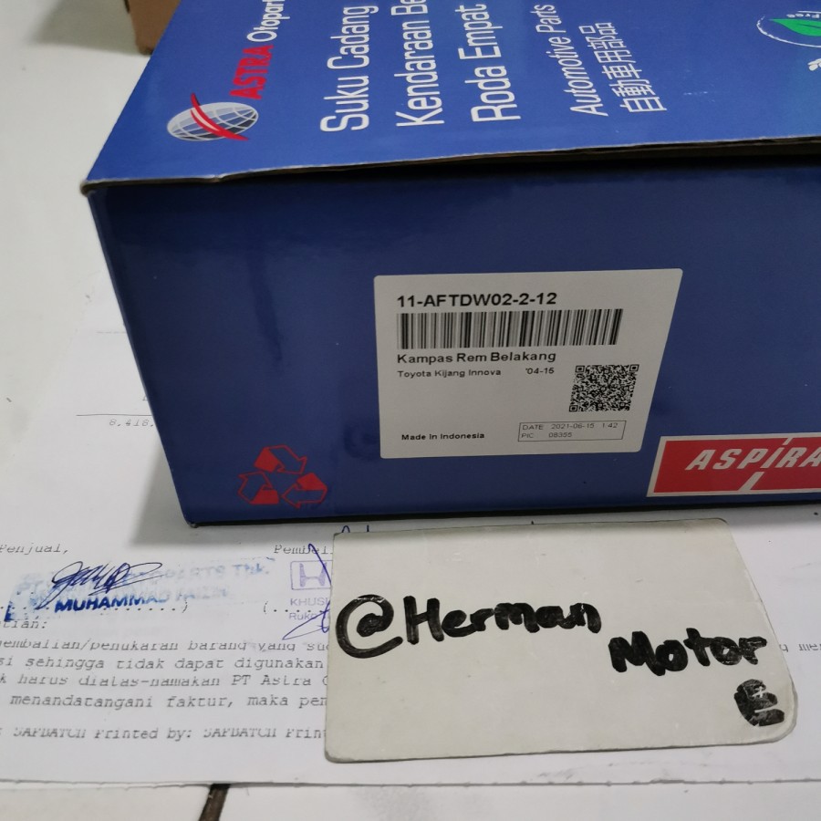 Kampas rem belakang TDW Original Innova 2004-2015 old- Barong Brake shoe AFTDW02-2-12 (dibawah license Akebono Brake Ind