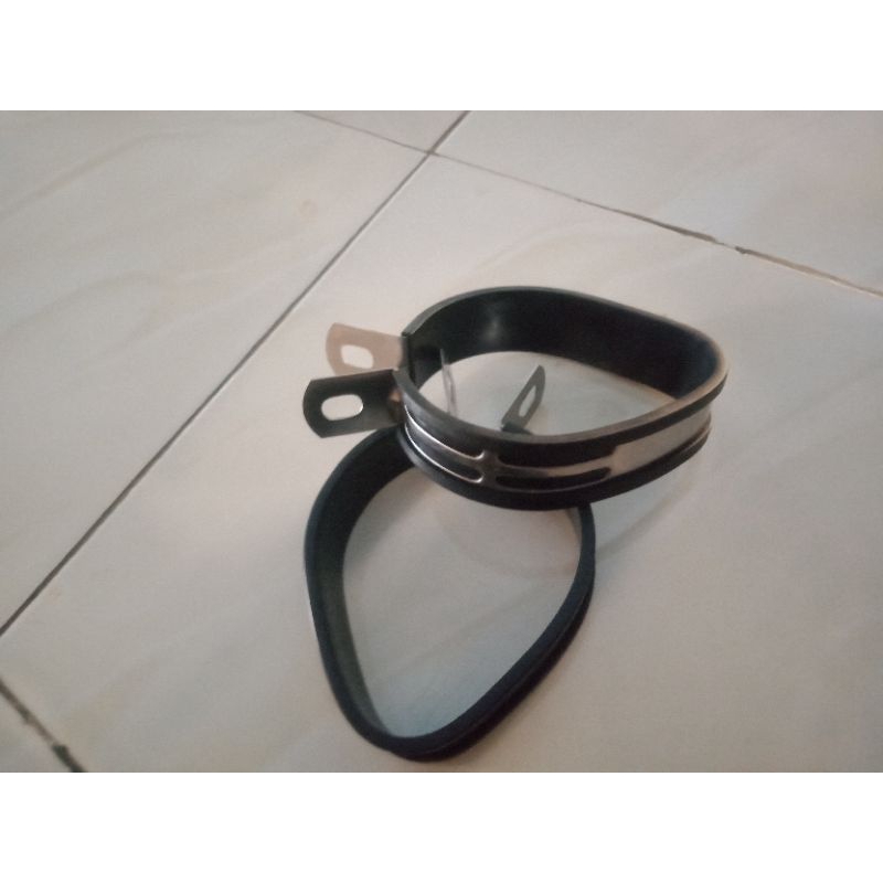 klem knalpot 5,5 inch briket gantungan knalpot bahan stainless steel big size variasi oval / bulat le 3cm karet hitam ta