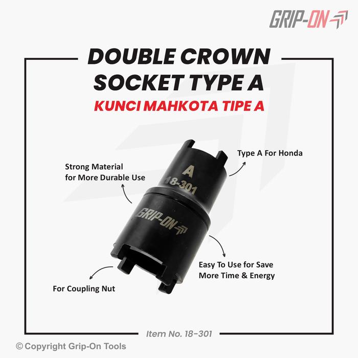 Grip-On Double Crown Socket Kunci Mahkota Ganda Mur Kopling - Type A