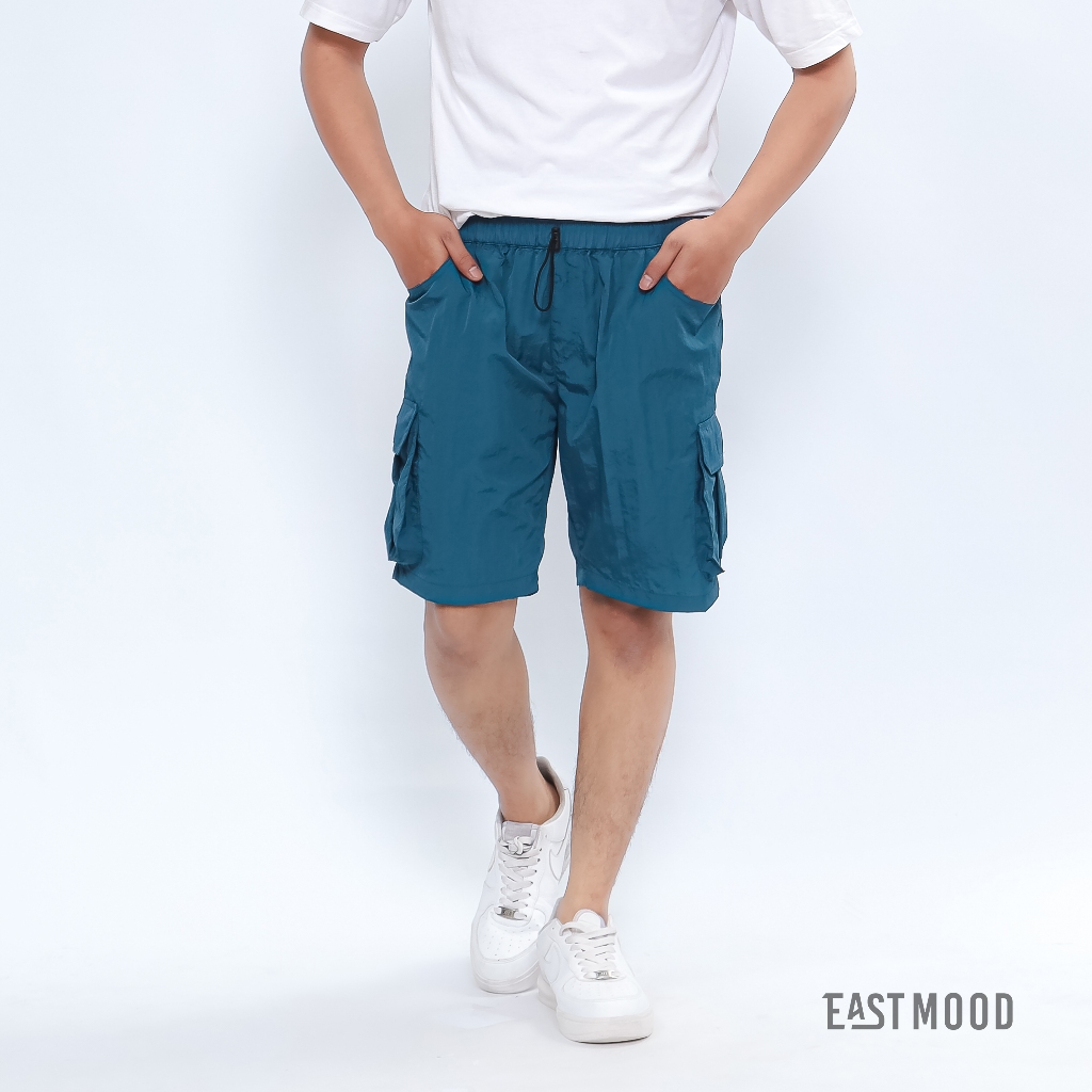 Eastmood Boardshort Celana Pendek Cargo Pria Wanita Parasut Crinkle Outdoor Santai - Blue Petrol
