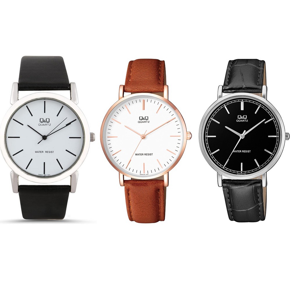 Q&Q Qnq Qq Original Analog Watch Jam Tangan Pria Wanita Tali Kulit Q978 Q979 Qa52 Qb93 Vw90