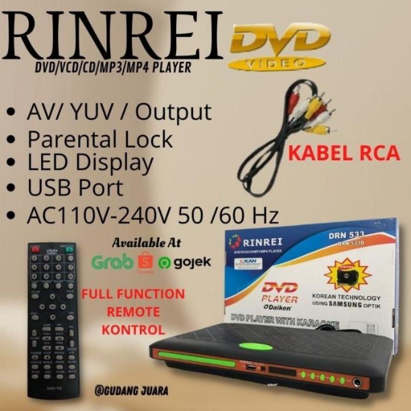 Rinrei DVD Player DRN-533D/DRN-533K USB CD Optic Samsung Digital Karaoke