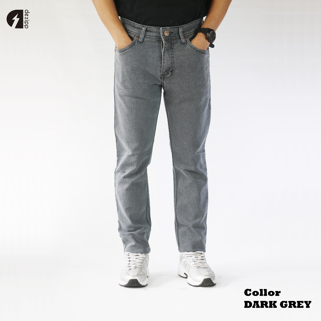 Dezipp Celana Panjang Jeans Denim Pria Skinny Stretch Bahan Melar Dark Grey
