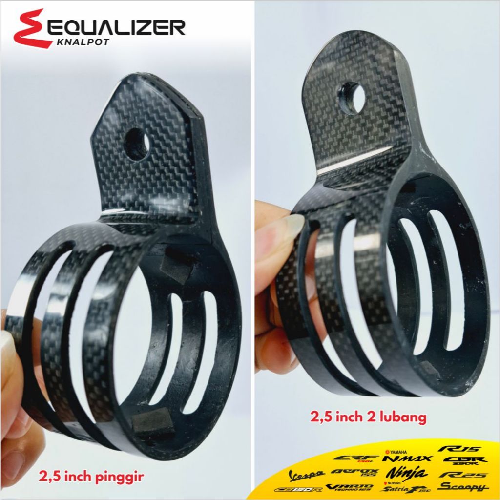 Klem Knalpot Carbon Karbon 4 Tak 2 Tak 2,5 Inch 3,5 Inch Ninja R RR Gantungan Clamp Breket Bracket Kleman Knalpot Carbon