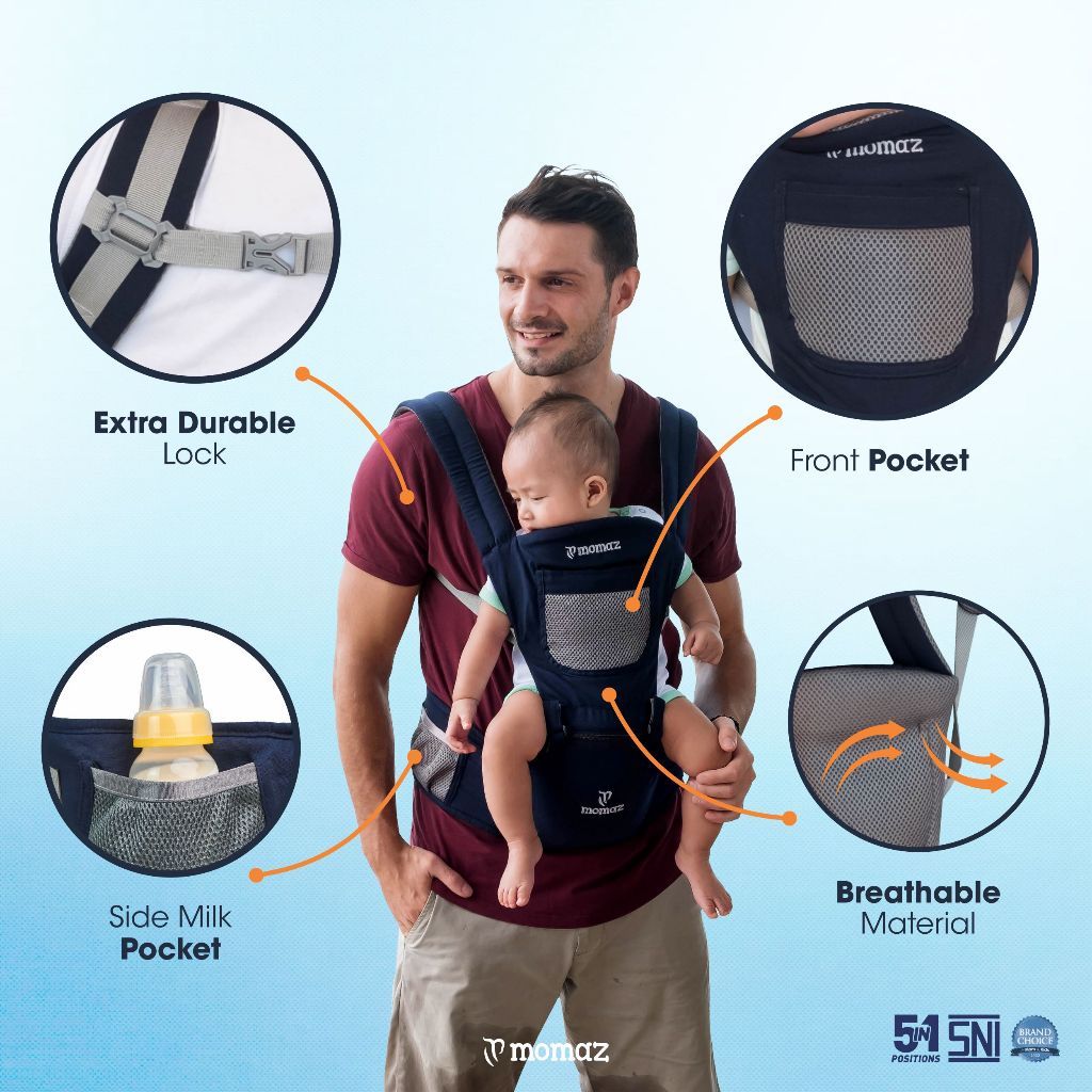 Momaz Gendongan Bayi Depan Hipseat 5in1 Navy Royal