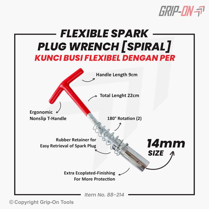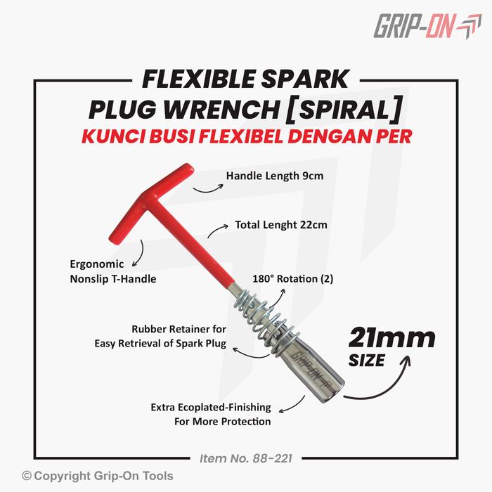 Kunci Busi Sok T 16 18 21 Mm / T Socket Spark Plug Wrench (Spiral) - 16Mm