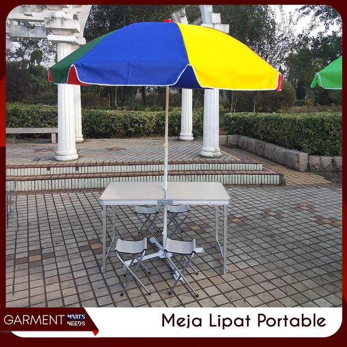 [Combo Hemat Bazar] Paket Jualan Meja Lipat Portable Lubang Payung Tenda Jualan Hemat - Meja Kayu Coklat - Payung 180Cm