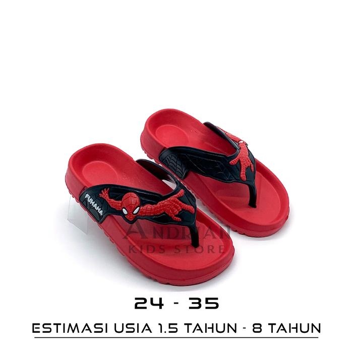FUHAHA - Sandal Anak Laki-laki Model Jepit Karakter Spider 2-8 tahun Kids Hitam