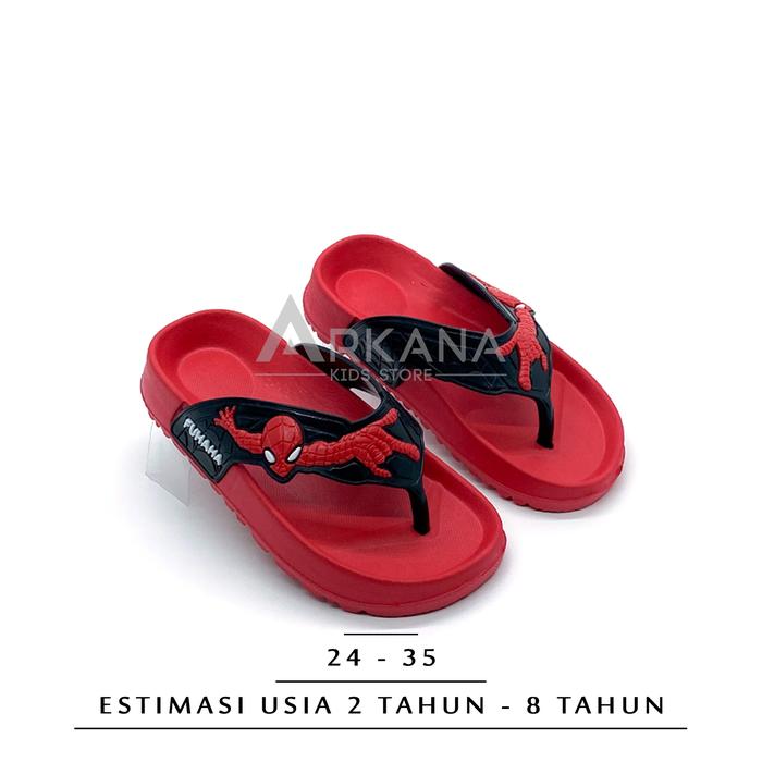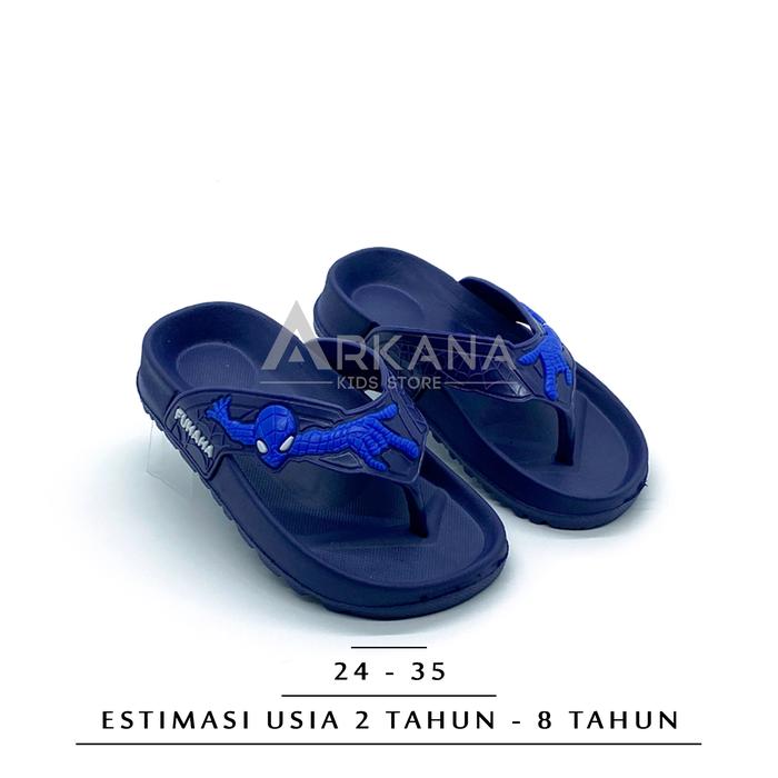 ARKANA - New Sandal Jepit Anak Laki-laki Karakter Spider Keren 2 - 8 Tahun Sandal jepit Abu Biru