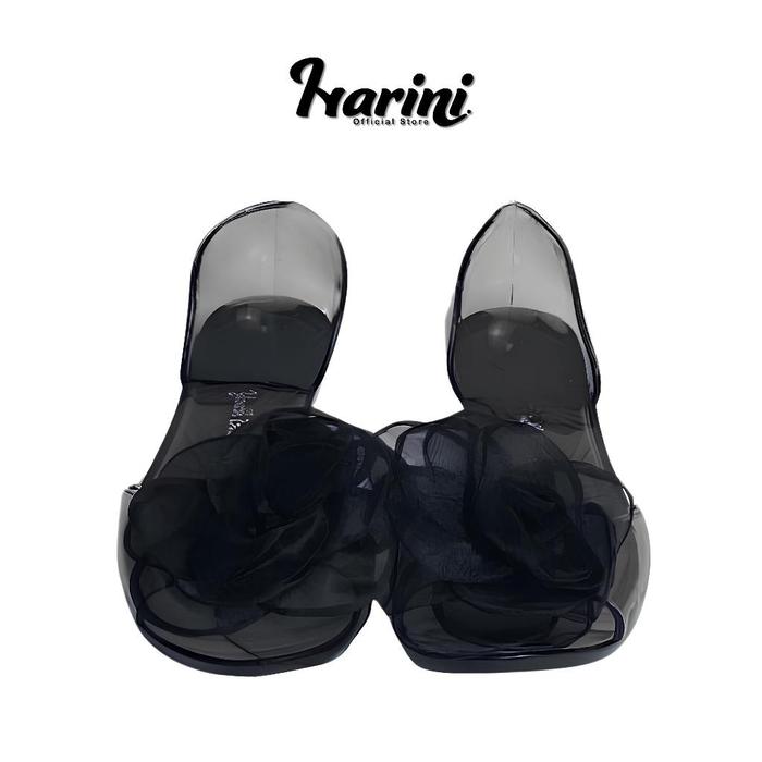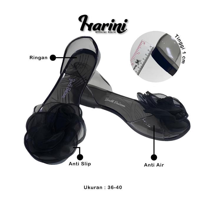 Sepatu Flat Kaca Flower Bunga Mawar Sandal Jelly Karet Flat Shoes Sepatu Sendal 186-A Wanita