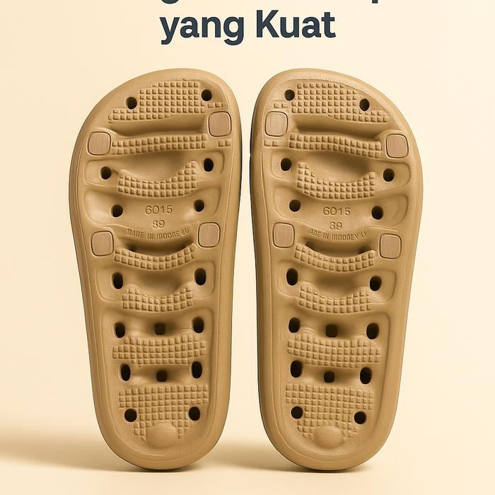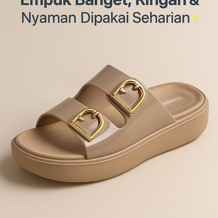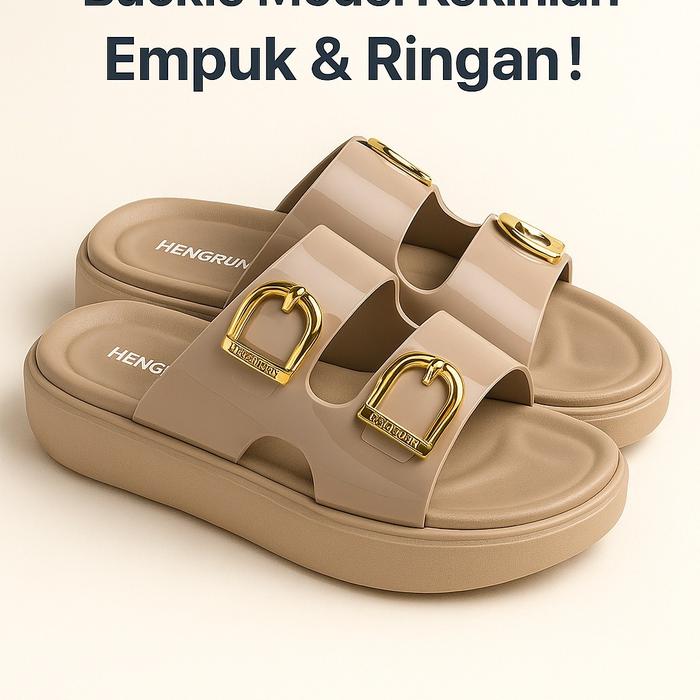 Hengrun Sandal Wanita Double Buckle HENGRUN Trendy Empuk Tahan Lama 6015 Hitam EVA Non-Slip