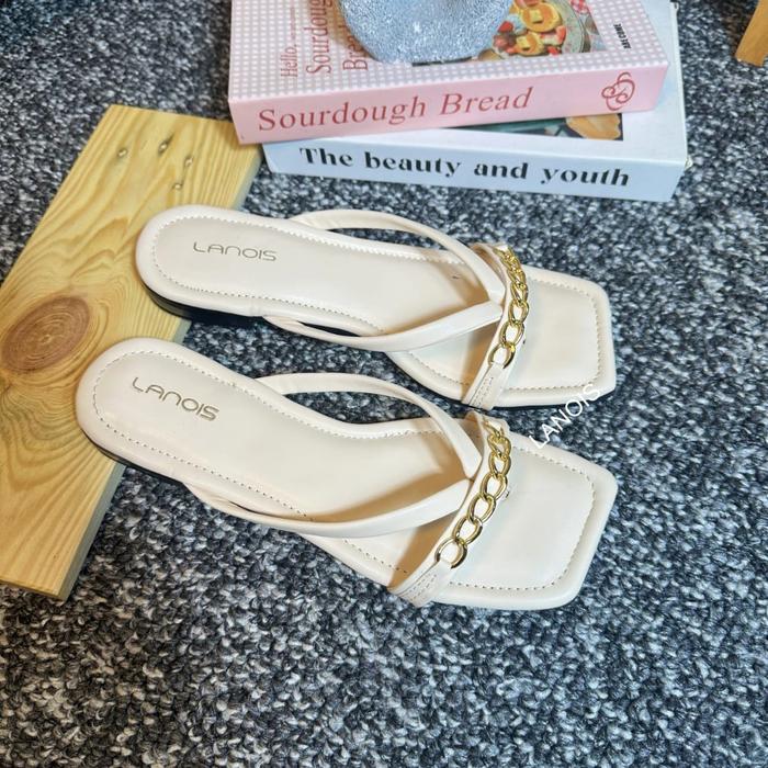 Sandal Flat Teplek Wanita Platform Jepit Rantai Kekinian Hak 1 Cm