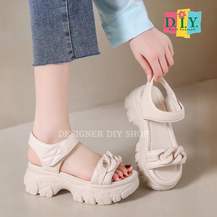 DIY-Sepatu Sandal Wanita Korea Wedges Sendal Jelly Tebal Rantai Curly Permium