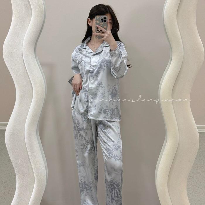 [PickMe] #A06 Baju tidur lengan panjang stelan oneset wanita baju tidur satin lengan panjang - XL