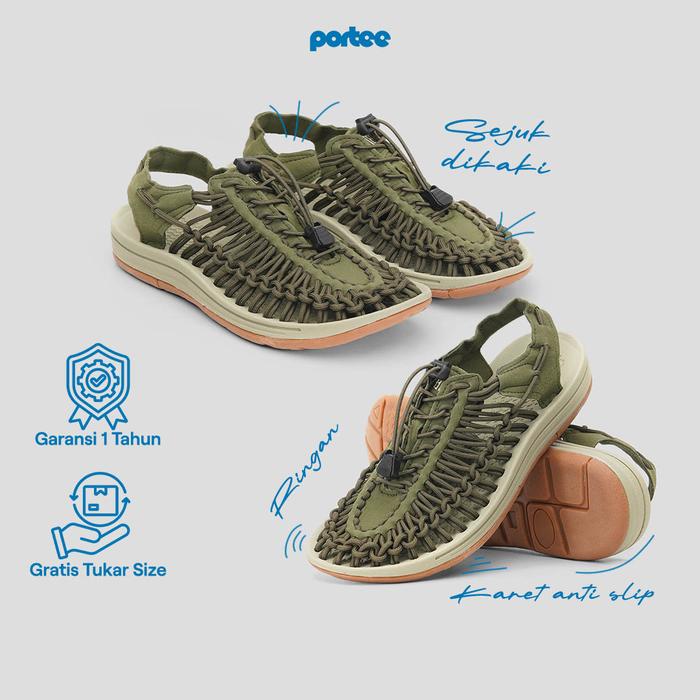 Sandal Pria Portee Loom Army Green Sandal Traveling Stylish Anti Slip, Empuk, Ringan Healing & Jalan