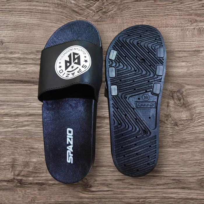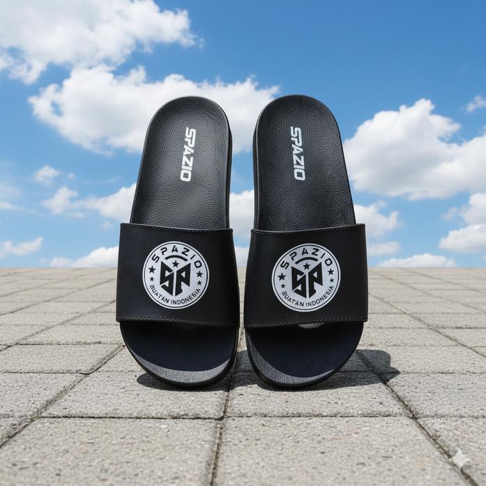 Spazio Sandal Selop Japit Pria Karet PVC Premium 5005 Anti Slip Hitam Putih Nyaman Awet untuk Santai