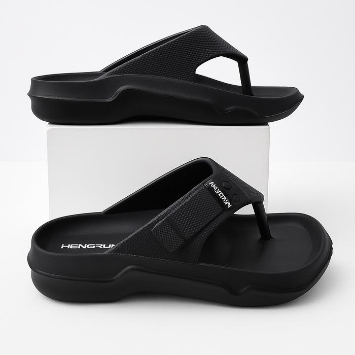 Hengrun Sandal Jepit Pria 2 Strap Kekinian Empuk Anti Slip Nyaman Seharian Karet EVA Black 8040H