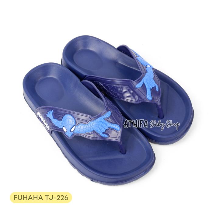 Sandal Jepit Karet Anak Laki 1 2 4 3 5 6 7 8 9 10 Tahun Karakter Spderman Kekinian FUHAHA 226 NAVY