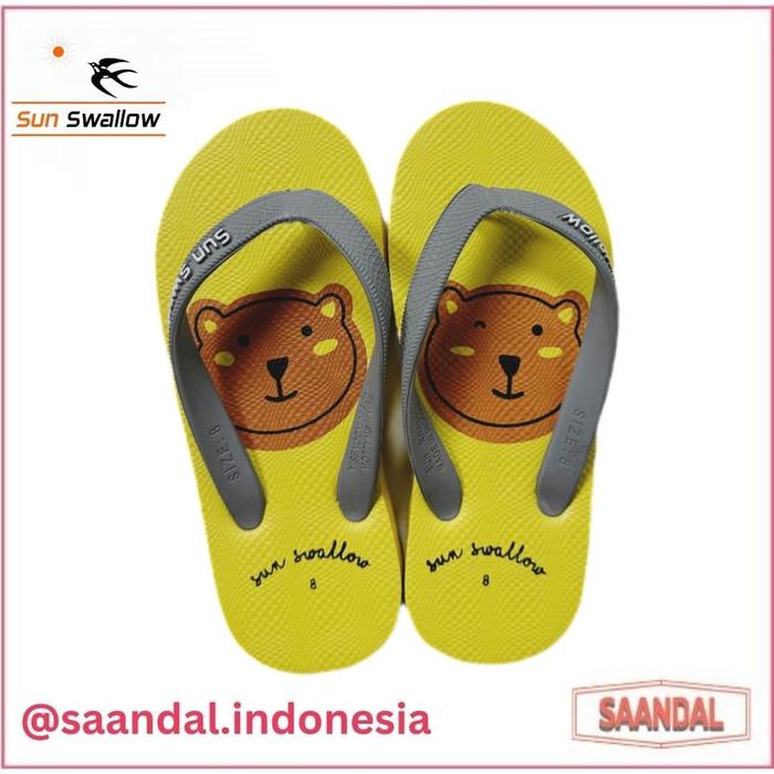 Sandal Jepit Karet Anak Laki-Laki Perempuan Sun Swallow Animal Kids Biru Kuning Pink Hijau Ukuran