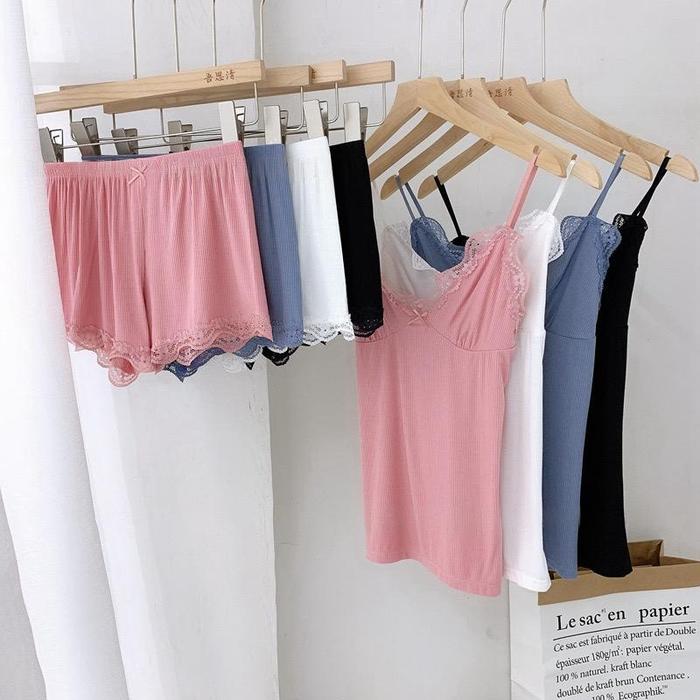 Blackpink Piyama Coquette Baju Tidur Fashion Lingeria Renda Wanita Import Lingerie Setelan Pendek 4097 - WHITE