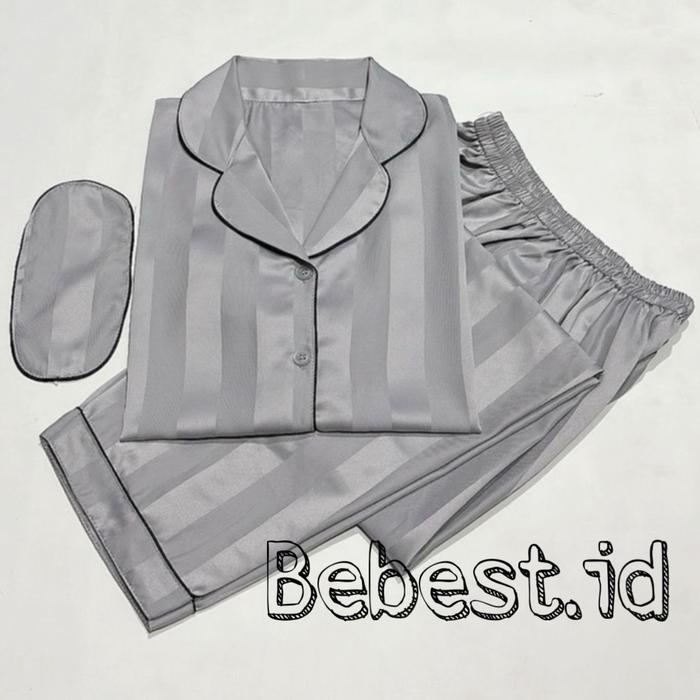 [SALUR PP] stelan piyama wanita salur lengan panjang saten - Abu ML