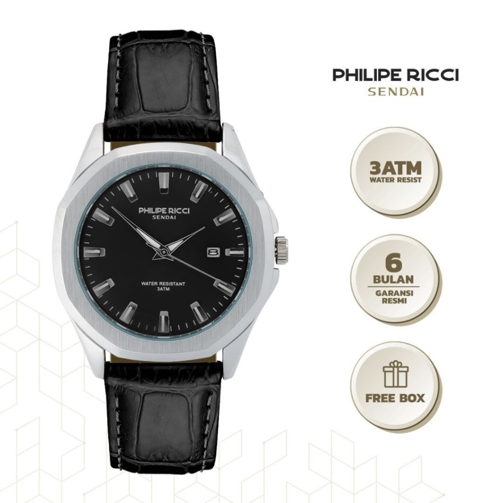 Philipe Ricci Sendai Jam Tangan Pria Kulit Hitam Terbaru 100 PERSEN Ori Water Resist 6481 Men Watches