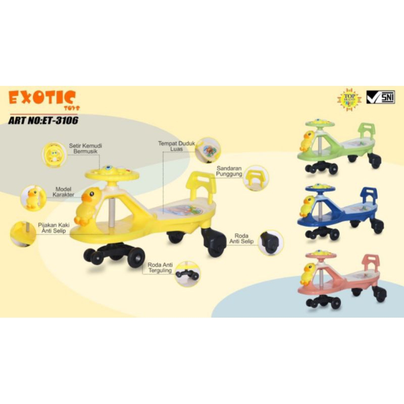 ET-3106/Swing Car EXOTIC ET 3106 Mainan Anak Mobil Mobilan Bebek Dorong Ayun Stir/Swing Car Exotic Bebek