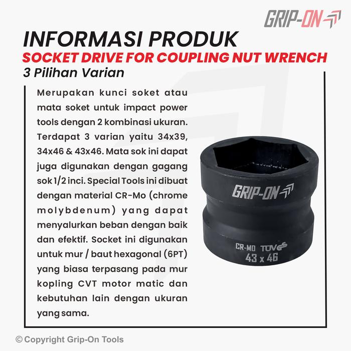 Mata Shock Impact Mur Cvt 34 X 39 - Kunci Sok Mur Kopling Cvt 34X39 Mm - Plus Packaging