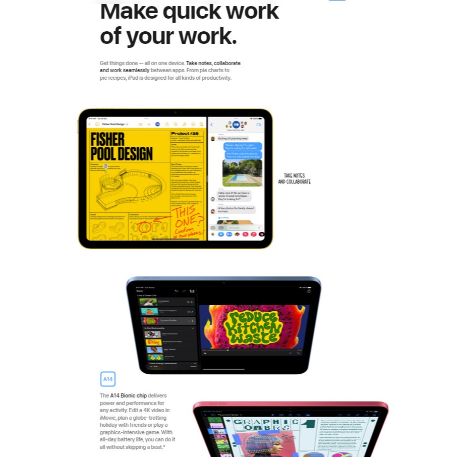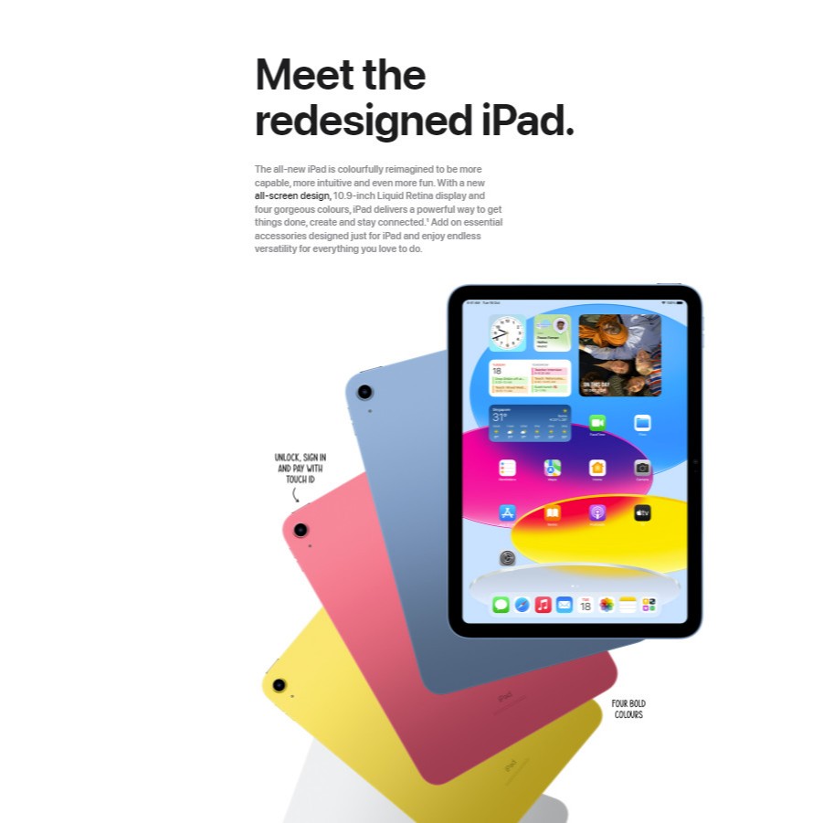 iPad 10 2022 64GB 256GB 10th Gen 10.9" Blue Yellow Silver Pink