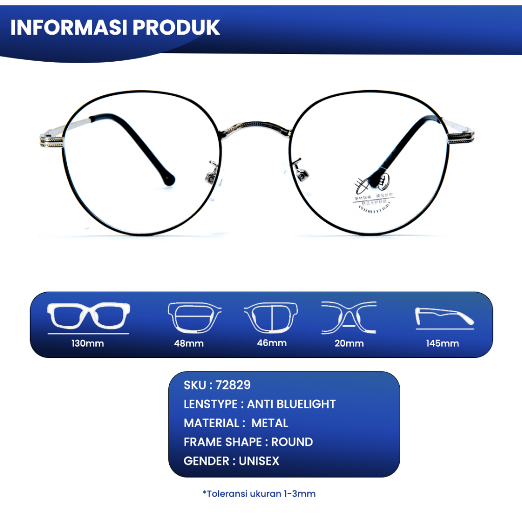 IOOI Eyewear - Kacamata Round Bahan Metal Anti Radiasi kacamata minus photocromic pria wanita original