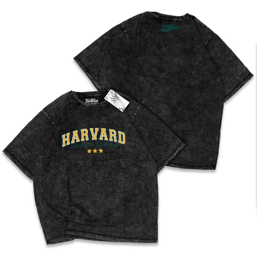 Fortklass Kaos Wash Harvard Kaos Oversize Pria Lengan Pendek Atasan Tshirt Distro Cowok Kaos Pria Kaos Polos Bigsize