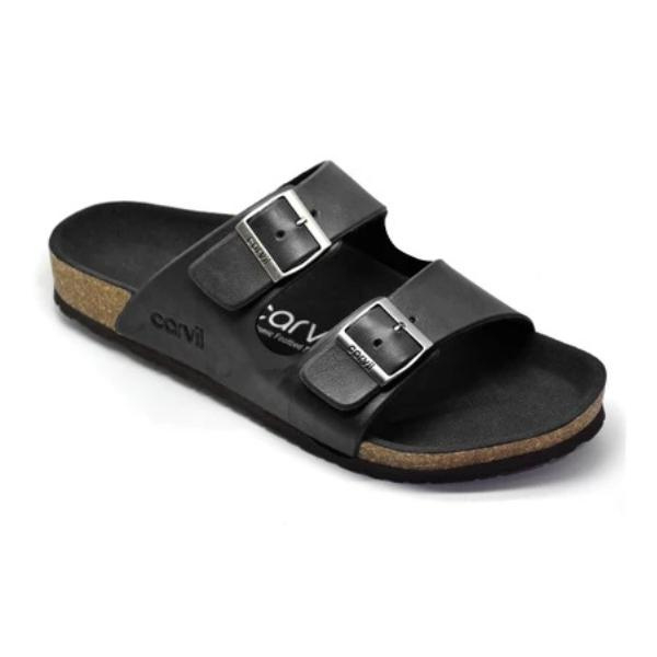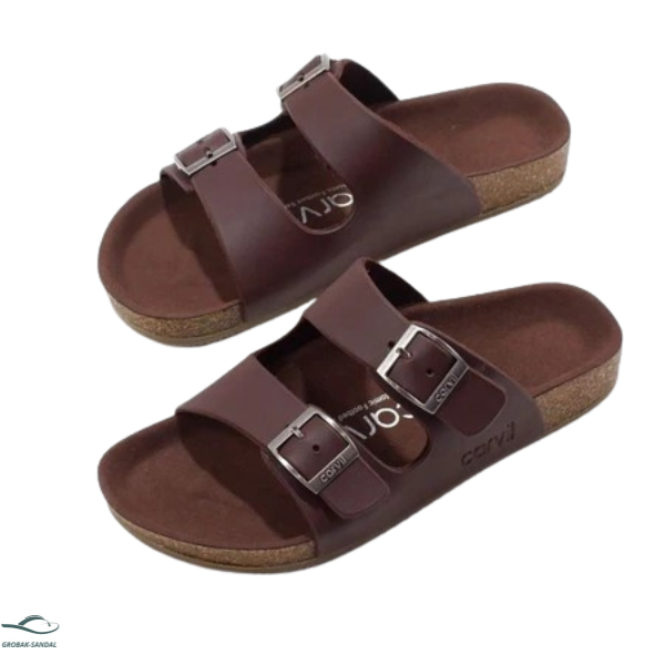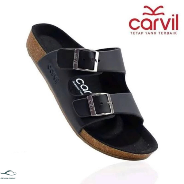 Sandal Slide Carvil Benzo 02 Sandal Kulit Sintesis Asli Tali Strap Dua Size Pria Carvil Dua Tali