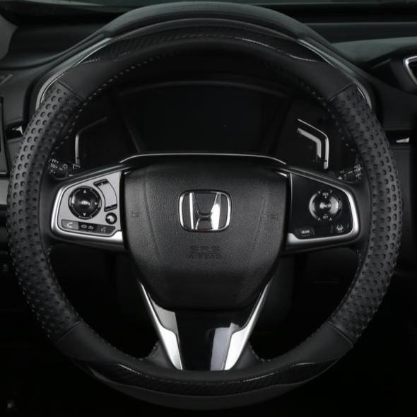 Sarung Stir Cover Setir Mobil Motif Polkadot karbon Kulit Premium - Dot Black