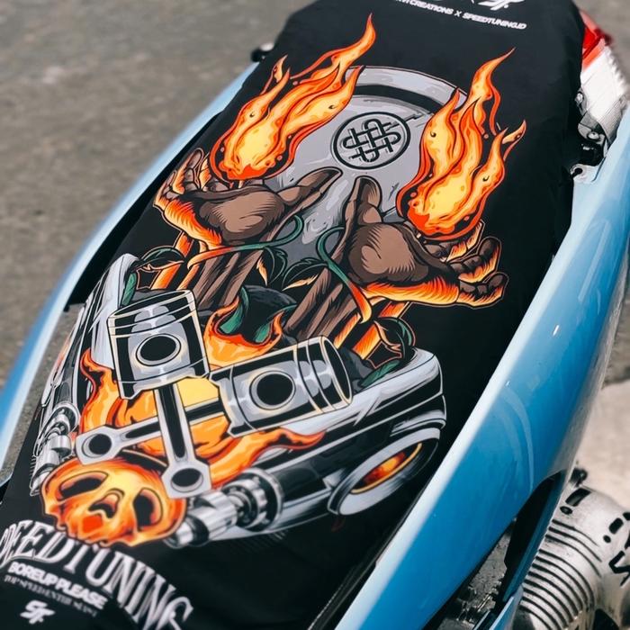 Sarung Jok Full print Arvicreations x Speedtuning MENYALAH ABANGKU Anti Cakar kucing & Air - API ORANGE JOK KECIL