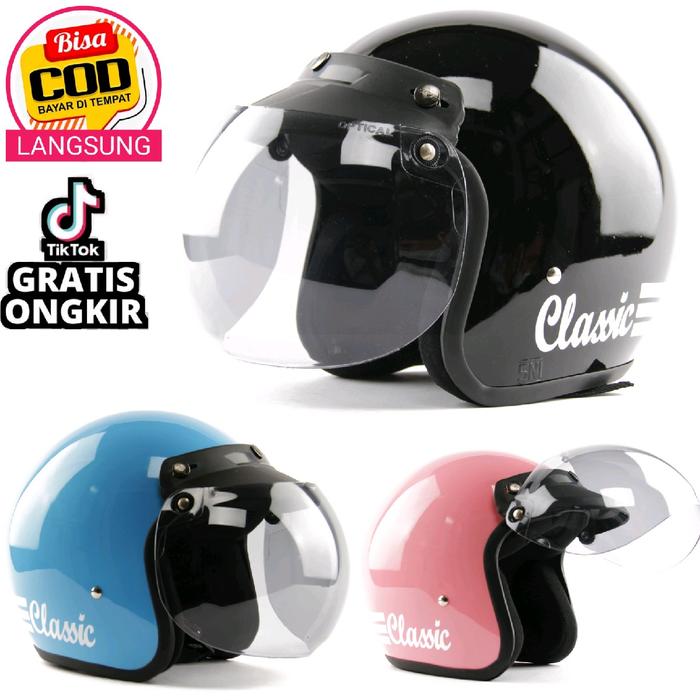 Helm Bogo Retro Classic Lis Polos Kaca Cembung motorcycle - Hitam Glossy Kaca cembung smoke