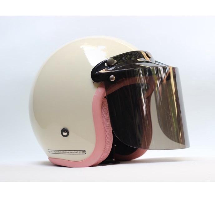 Helm Wanita Hijab Cream Pastel Sni 2022 Motorcycle Kaca datar Kaca cembung - CREM PASTEL KACA DATAR SMOKE