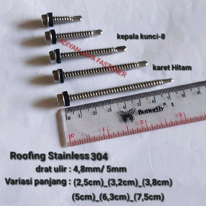 Baut Roofing Stainless 304/ Sekrup Drilling #12X25 / #12-14X1 INCHI (100pcs)