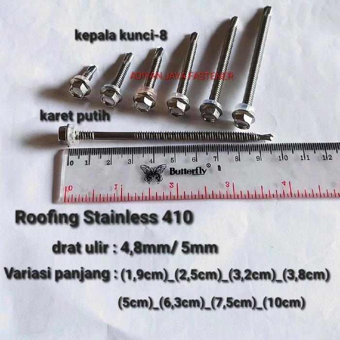 Baut Roofing Stainless 410/ Sekrup Drilling #12X63 / #12-24-21/2 inchi (100pcs)