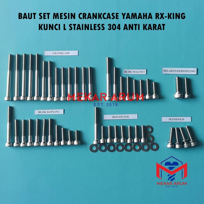 Baut Set Mesin Crankcase RX KING RXking Kunci L Stainless asli - FULL SET MESIN
