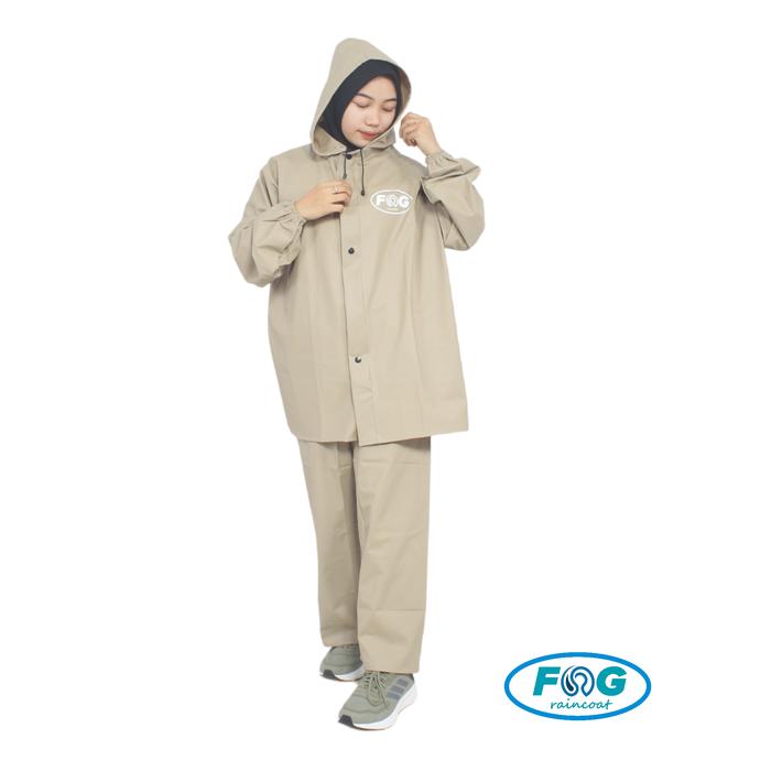 Jas Hujan FOG Pria Wanita Bahan Tebal Dan Elastis / Mantel Hujan / Raincoat Waterproof Dewasa - CREAM M