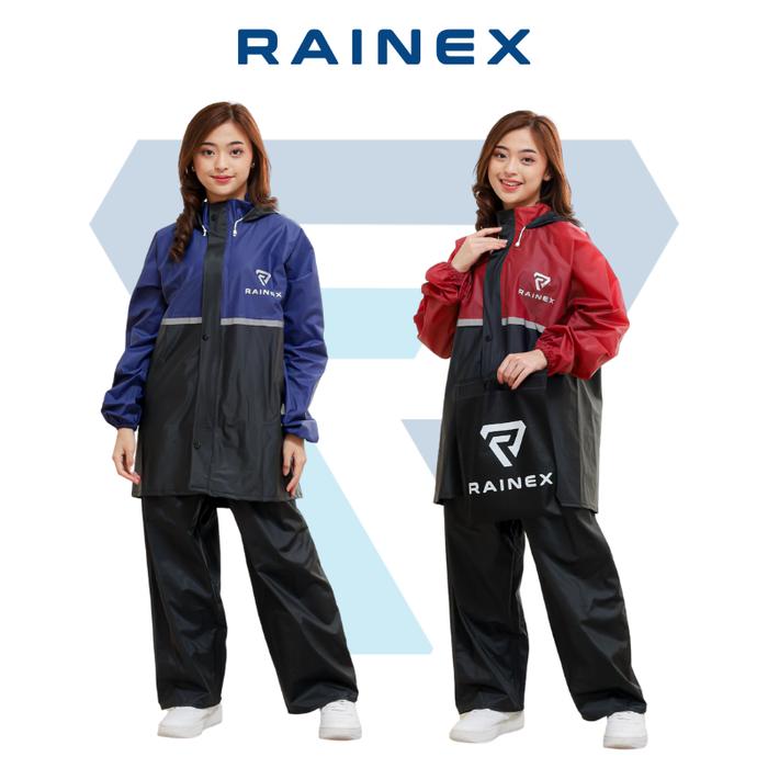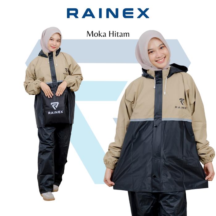 Jas Hujan/Mantel Set Hoodie Pria & Wanita Bahan Tebal Trendy Anti Rembes Press Sealer By Rainex - Moka M