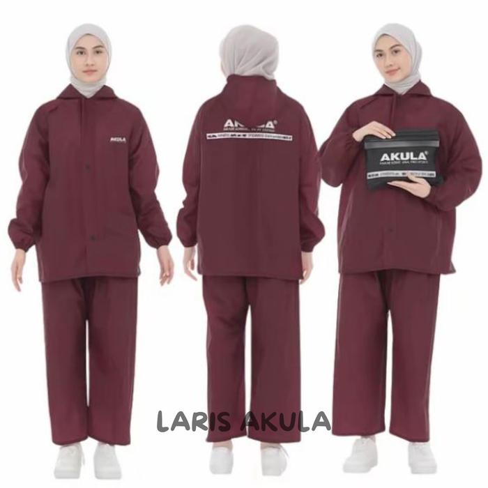 Jas Hujan Akula Pria Wanita Bahan PVC Tebal Elastis dan Anti Air - Burgundy L