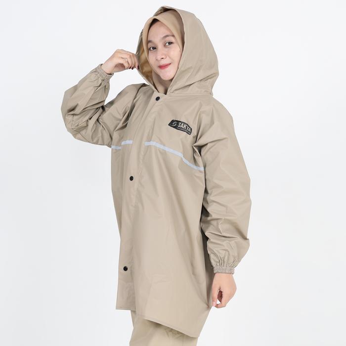 Jas Hujan Reflektor Setelan Lengan Panjang by SAKYA Jaket Celana Unisex Anti Rembes Bahan PVC Terbaru! - Krem M